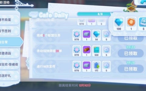 咖啡协会(类似于爬塔)赠送的钻石随着层数的增多会给的越多,每五层还会给双倍的奖励。